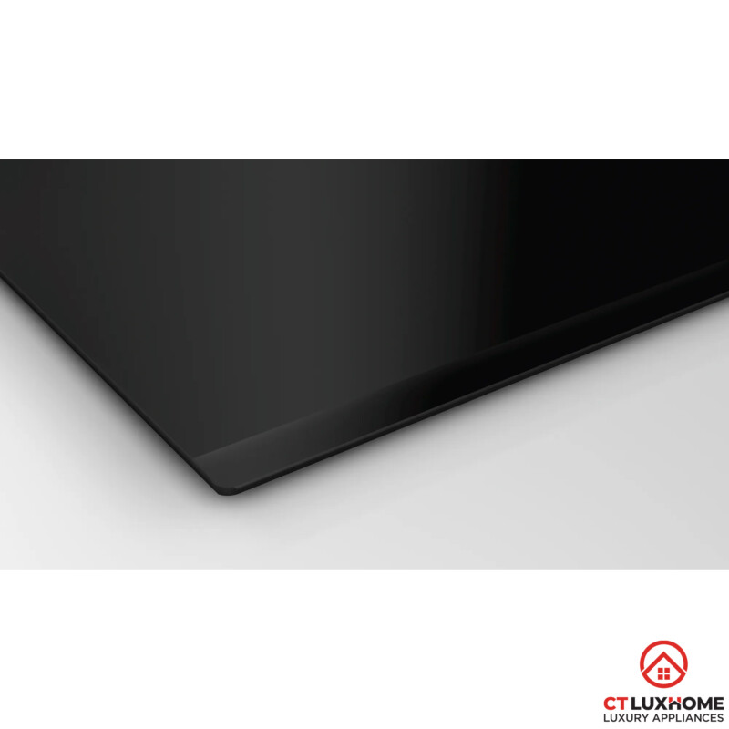 Bếp từ Bosch PUC631BB5E được thiết kế với các cạnh bên được bo tròn, cạnh trước tạo thành một đường vát sang trọng, tinh tế. Mặt kính bếp từ được trang bị lớp kính Schott Ceran đen bóng, góp phần tăng thêm thẩm mĩ cho căn bếp của bạn.