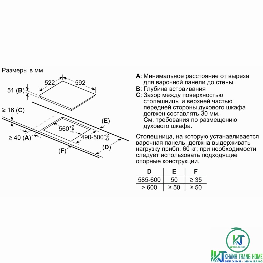 Kích thước của bếp từ Bosch PUC631BB5E là 51 x 592 x 522mm (CxRxS) cùng với tổng trọng lượng là 10kg.