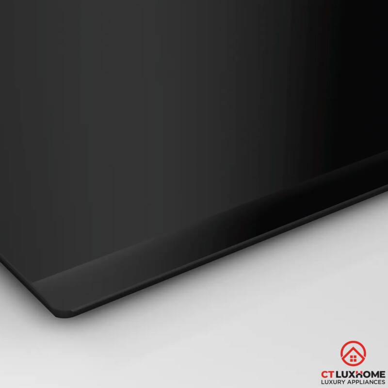 Bếp từ Bosch PXE631FC1E được thiết kế với các góc bo tròn, cạnh mặt kính tạo thành các đường vát tinh tế. Bề mặt bếp từ PXE631FC1E được làm từ kính Schott Ceran đen bóng, góp phần tô điểm cho không gian bếp thêm sang trọng.