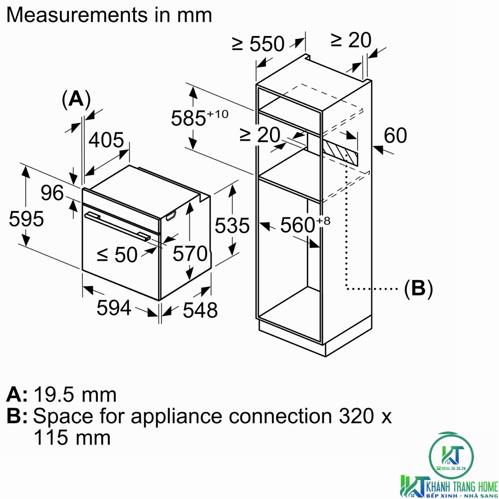 | Kích thước lắp đặt (C x R x S) | 585-595 x 560-568 x 550 mm |